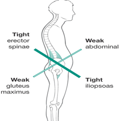 Pelvic tilt develops with the overuse of specific muscles that act on the pelvis while in the positions mentioned above. These overworked muscles pull the anterior aspect (front) of the pelvis forward while the core remains inactive. This leads to neuromuscular inefficiency and aids in the development of a lazy, inactive posture, which the brain begins to default to because it is an easier position to maintain.
